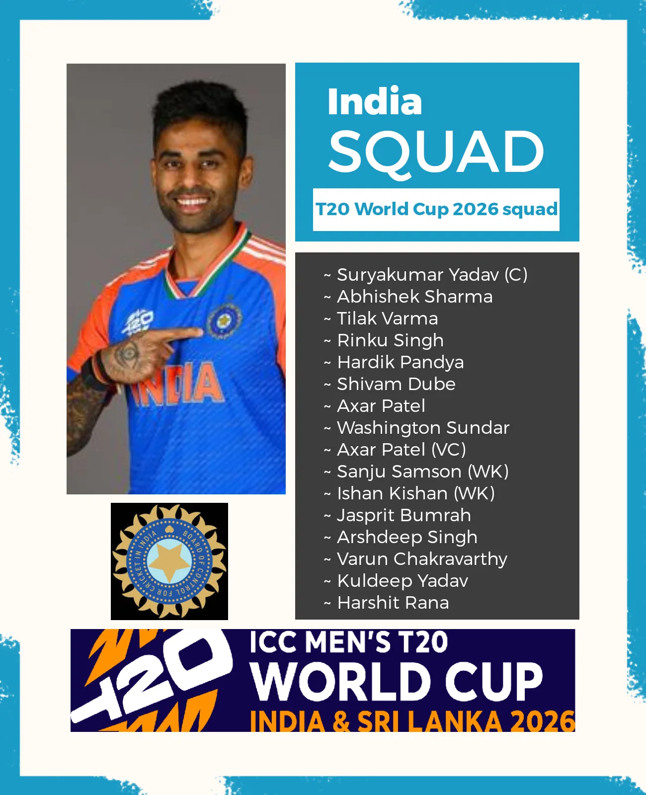 India T20 World Cup 2026 squad โ full list